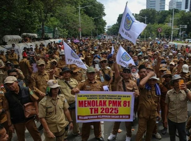 Jakarta – Publikpost – Setelah beberapa pekan memanas, polemik Peraturan Menteri Keuangan (PMK) Nomor 81 Tahun 2025 akhirnya menemui titik terang. Suasana di kawasan Monumen Nasional (Monas) pada Senin (8/12) berubah menjadi panggung penting ketika Asosiasi Pemerintah Desa Seluruh Indonesia (APDESI) menggelar aksi damai sekaligus rapat hearing dengan Wakil Menteri Sekretaris Negara (Wamensesneg) RI. Pertemuan berlangsung sejak pukul 11.30 hingga 14.00 WIB dalam kondisi tertib, terorganisir, dan penuh harapan dari para kepala desa yang hadir dari berbagai daerah.