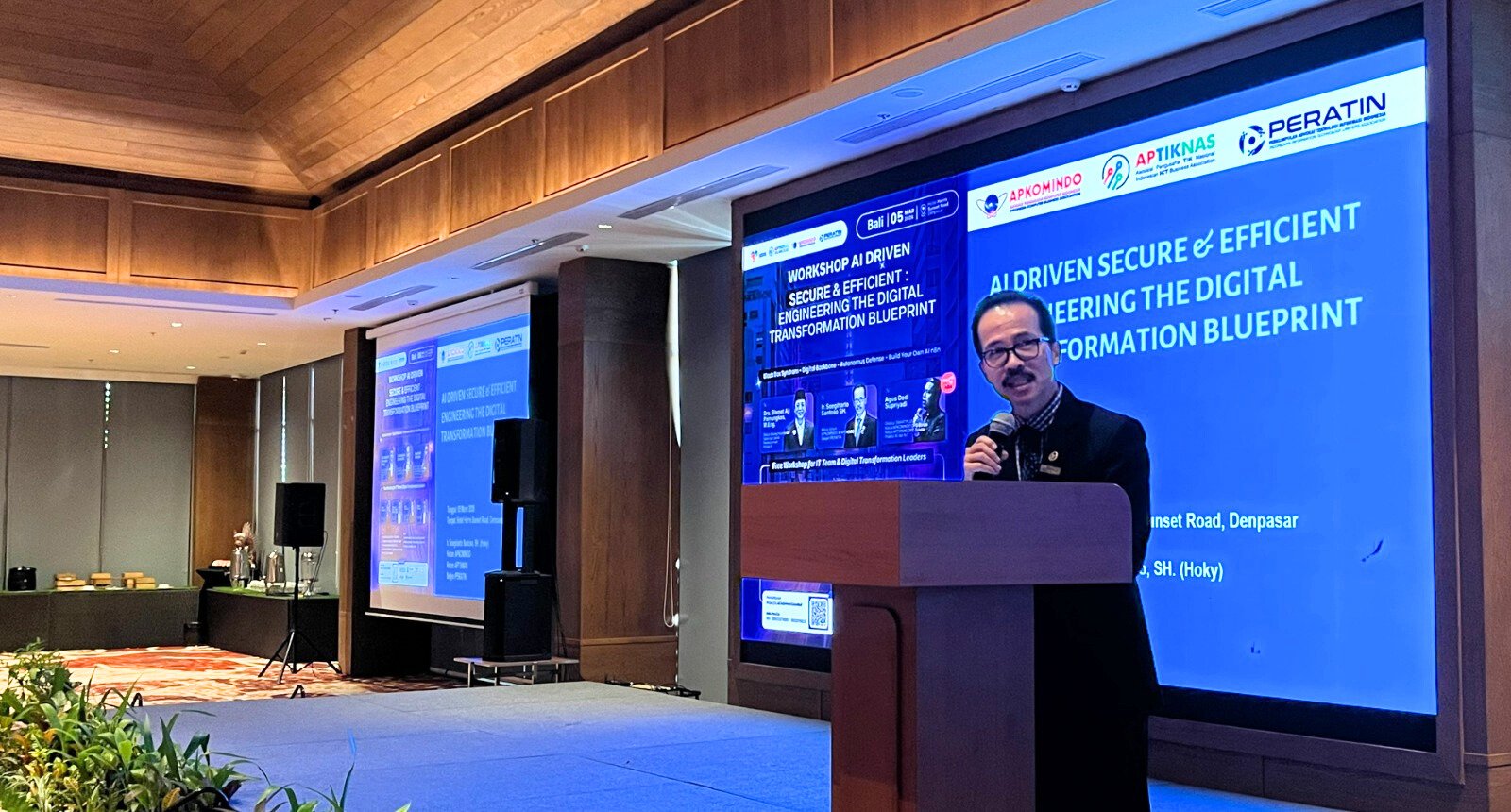Saat ini APKOMINDO, APTIKNAS, dan PERATIN bersama YORINOD tengah menyelenggarakan rangkaian Roadshow 10 Kota melalui workshop “AI Driven Secure & Efficient: Engineering the Digital Transformation Blueprint” sebagai bagian dari upaya berkelanjutan dalam memperkuat transformasi digital yang aman, efisien, dan berkelanjutan. Kegiatan ini mendapat dukungan dari Badan Siber dan Sandi Negara dengan melibatkan Drs. Slamet Aji Pamungkas, M.Eng. (Mamung) selaku Deputi Bidang Keamanan Siber dan Sandi Perekonomian BSSN RI, baik secara luring maupun daring.