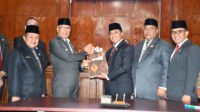 Foto : Kepala Desa Batu Dewa Putra Jaya saat menyerahkan hadiah Publikpost.com