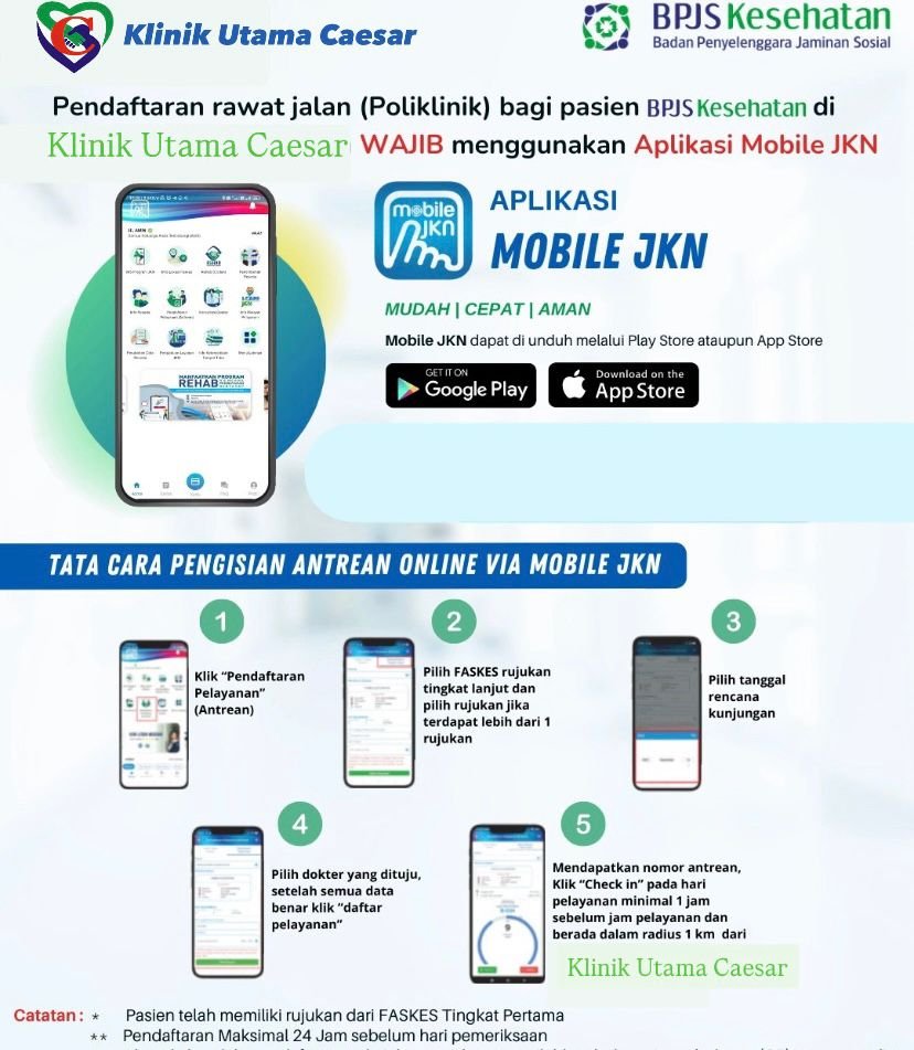 Sebelum berobat ke Klinik Caesar, peserta BPJS perlu memastikan bahwa Fasilitas Kesehatan Tingkat Pertama (FKTP) yang terdaftar di kartu BPJS adalah Klinik Caesar.